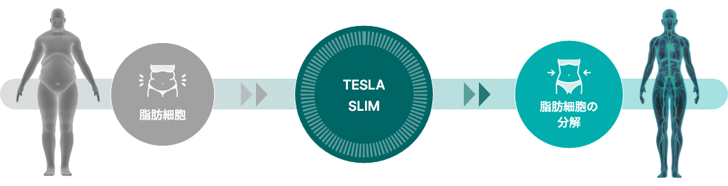 強力なパルス磁場が体内に伝達され、深層筋を刺激しながら脂肪細胞の分解を促進します。