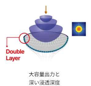 ピエゾ素子を二層に配置することで、単層方式より深く、精密な衝撃波の照射が可能なハンドピースです。