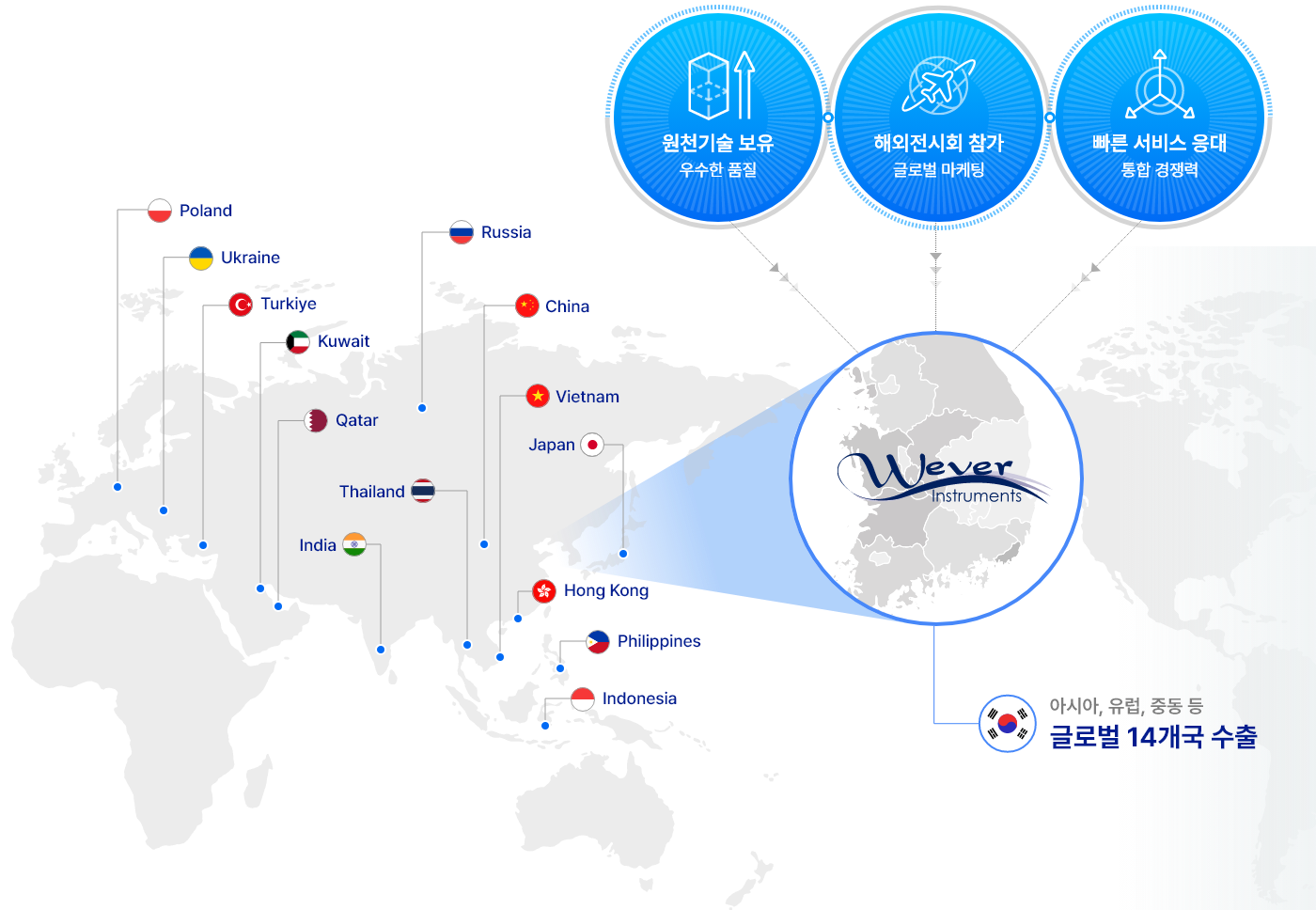 글로벌 사업화 전략으로 전 세계 여러 나라로 수출 중입니다.